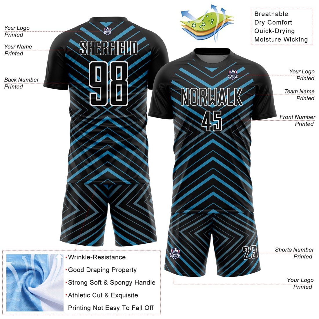 Custom Black Panther Blue-White Stripes Sublimation Soccer Uniform Jersey